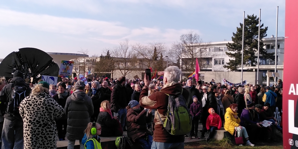 Deshalb waren wir und 10000 andere gestern auf der Straße und haben zusammen unter dem Motto „Solidarität statt Rechtsruck“ demonstriert. Am Ende der Demo fand dann auch eine große Kundgebung mit Redebeiträgen und Live-Musik von regionalen Bands statt. Dort standen wir und auch andere Organisationen mit Infoständen, um verschiedene antifaschistische Sichtweisen zu repräsentieren. Wir haben gezeigt, dass wir viele sind! Dass wir uns unsere offene und vielfältige Lebensweise nicht nehmen lassen und dass wir dem Rechtsextremismus und dem Demokratieabbau entschlossen entgegentreten!